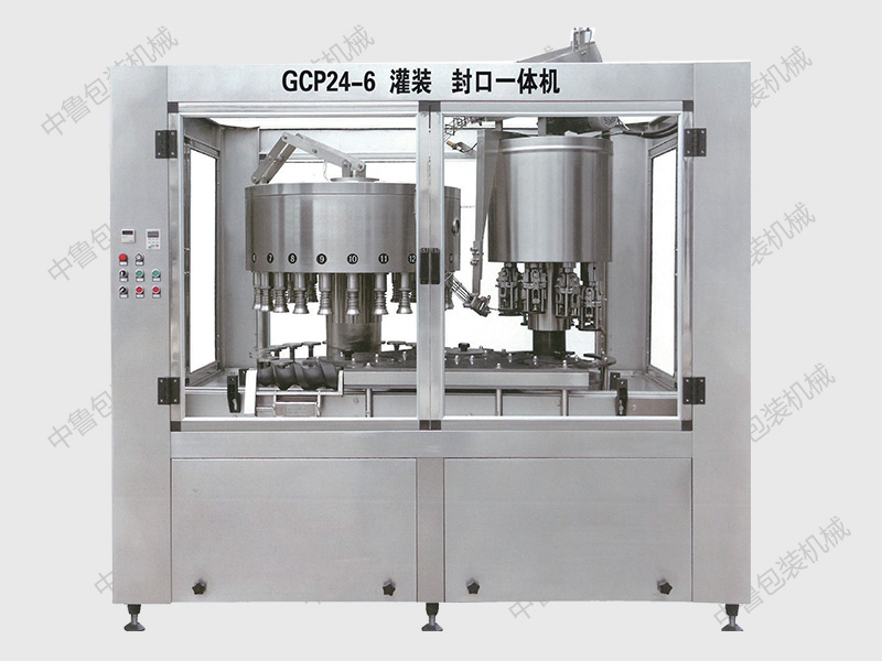 該灌裝封口聯體機主要應用于白酒液體的灌裝封口,本機將灌裝封口合為一體,節省了設備的安裝空間,該設備結構緊湊、安裝合理、操作方便,采用單電機動力輸出、變頻調速,兩臺設備運轉的同步性,本機 灌裝容量大,可在150-750毫升之間調整,調量方便,采用電動同步調整容量,按下加減調量按鈕可調整灌裝量, 顯示調整容量。